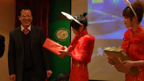 絢麗的舞臺(tái)、火紅的背景、繽紛的彩球 1月20日晚,大唐花園酒店多功能廳內(nèi)喜氣洋洋、流光溢彩、節(jié)日氣氛分外濃厚。